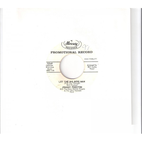 Original Vinyl Single, sehr sehr seltene Aufnahme des Sängers, Mercury Records 72049, hier als Weißpromo, Amerikanische Pressung